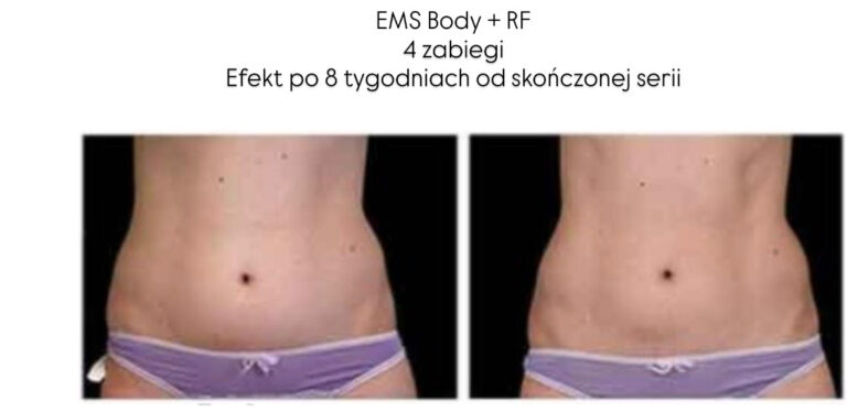 Po serii zabiegów widoczna różnica poprawy wyglądu – dzięki jednoczesnej redukcji tkanki tłuszczowej i zwiększeniu gęstości i objętości mięśni