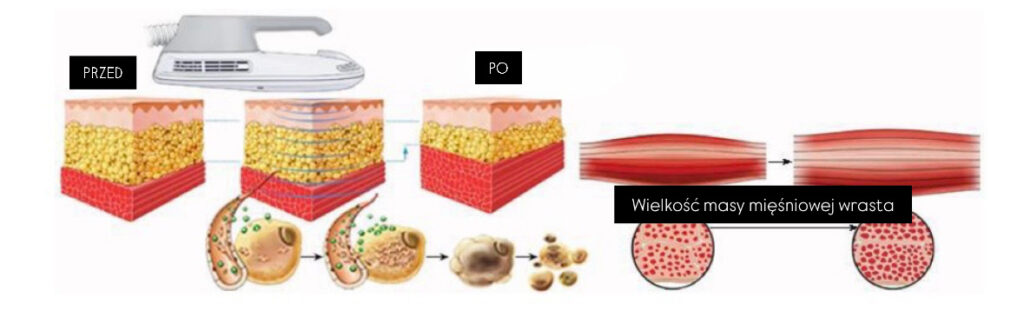 Mięśnie potrzebują energii, aby wywołać skurcze. Ta informacja wywołuje silną reakcję uwolnienia energii i ponadmaksymalną lipolizę. W bliskim sąsiedztwie kurczących się mięśni, m.in. z powodu zwiększonego przepływu krwi w tkance tłuszczowej, dochodzi do nagromadzenia wolnych kwasów tłuszczowych (FFA), a ich nadmiar wywołuje rozpad komórek tłuszczowych. Uwolniony w ten sposób z adipocytów tłuszcz jest w naturalny sposób metabolizowany i wydalany z organizmu.